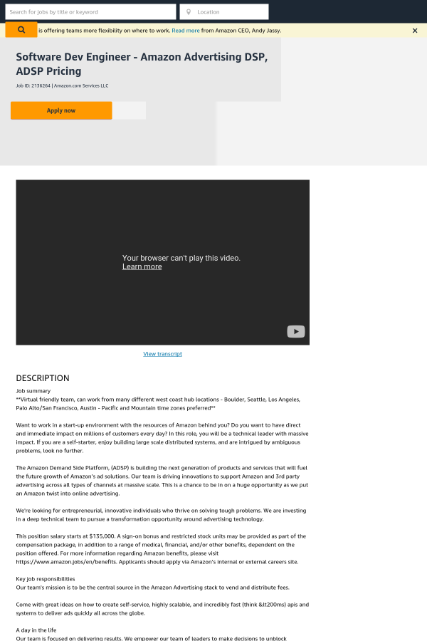 Software Development Engineer Amazon Advertising Dsp Adsp Pricing Job At Amazon In Boulder Co 53344342 Tapwage Job Search